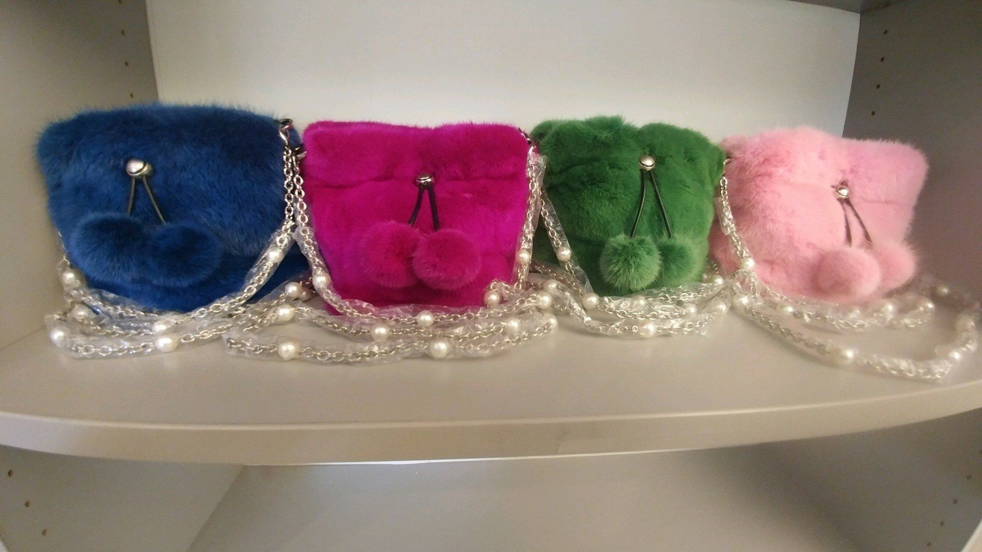 Mink Clutch Purse with Cross Body Strap and Pearls