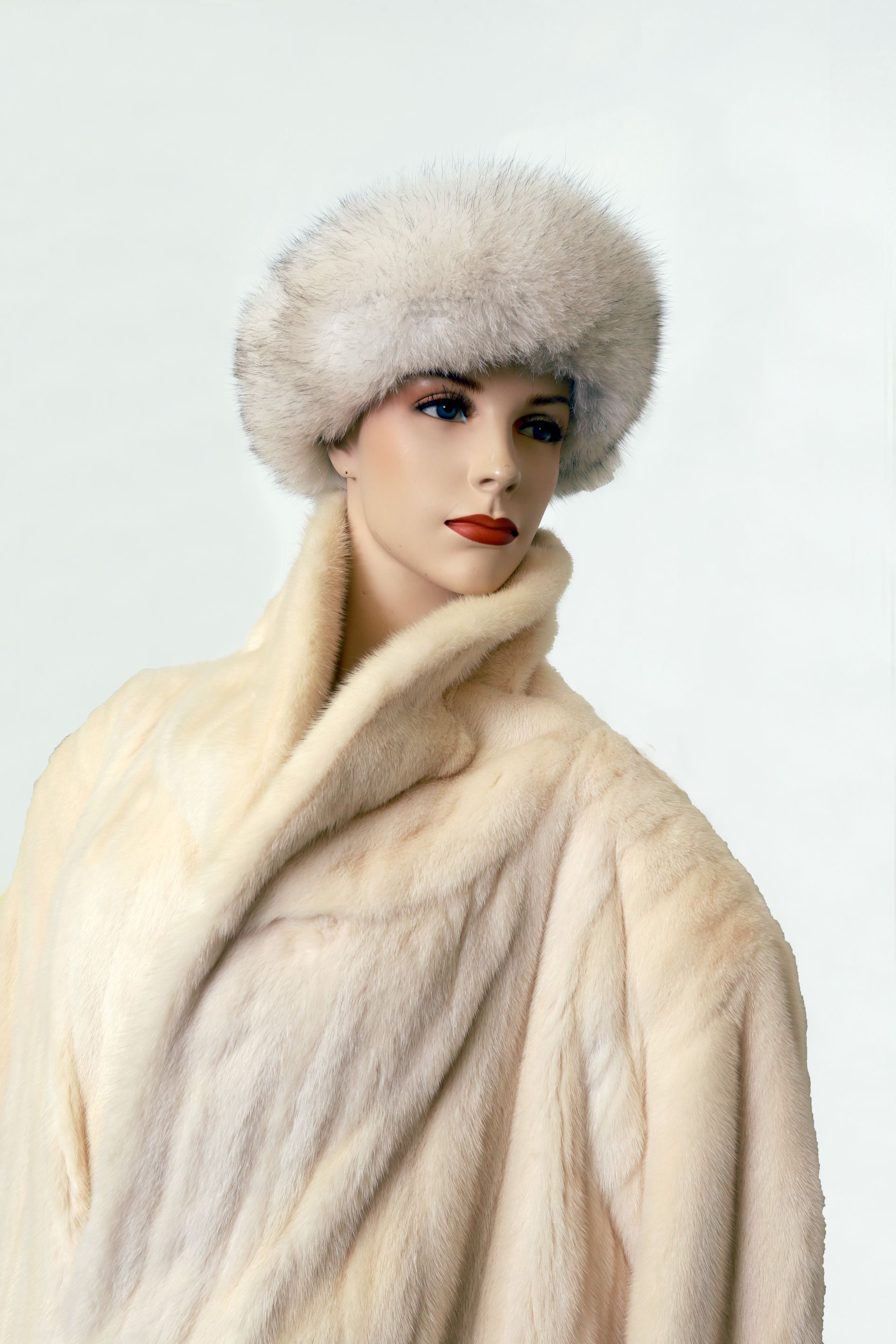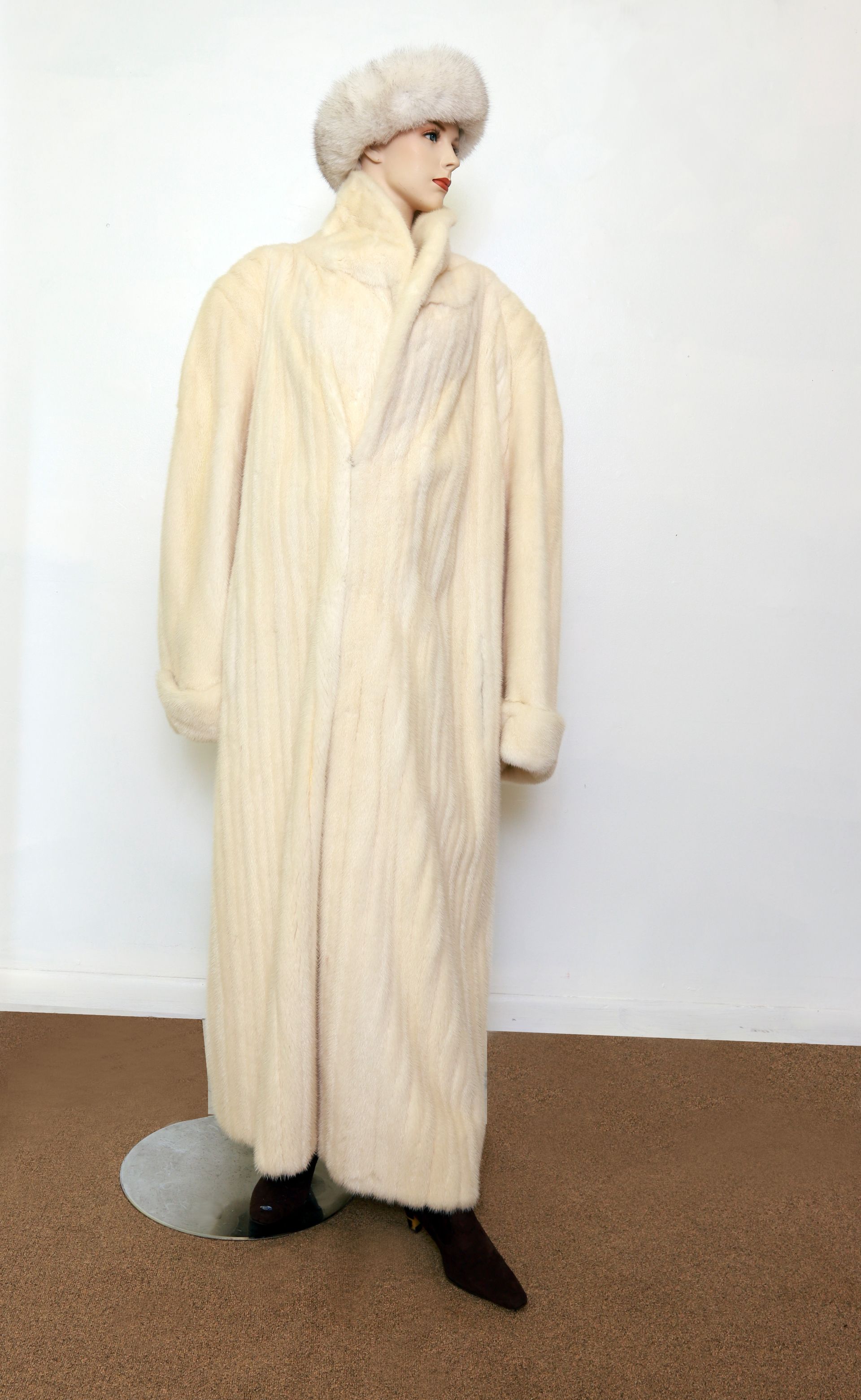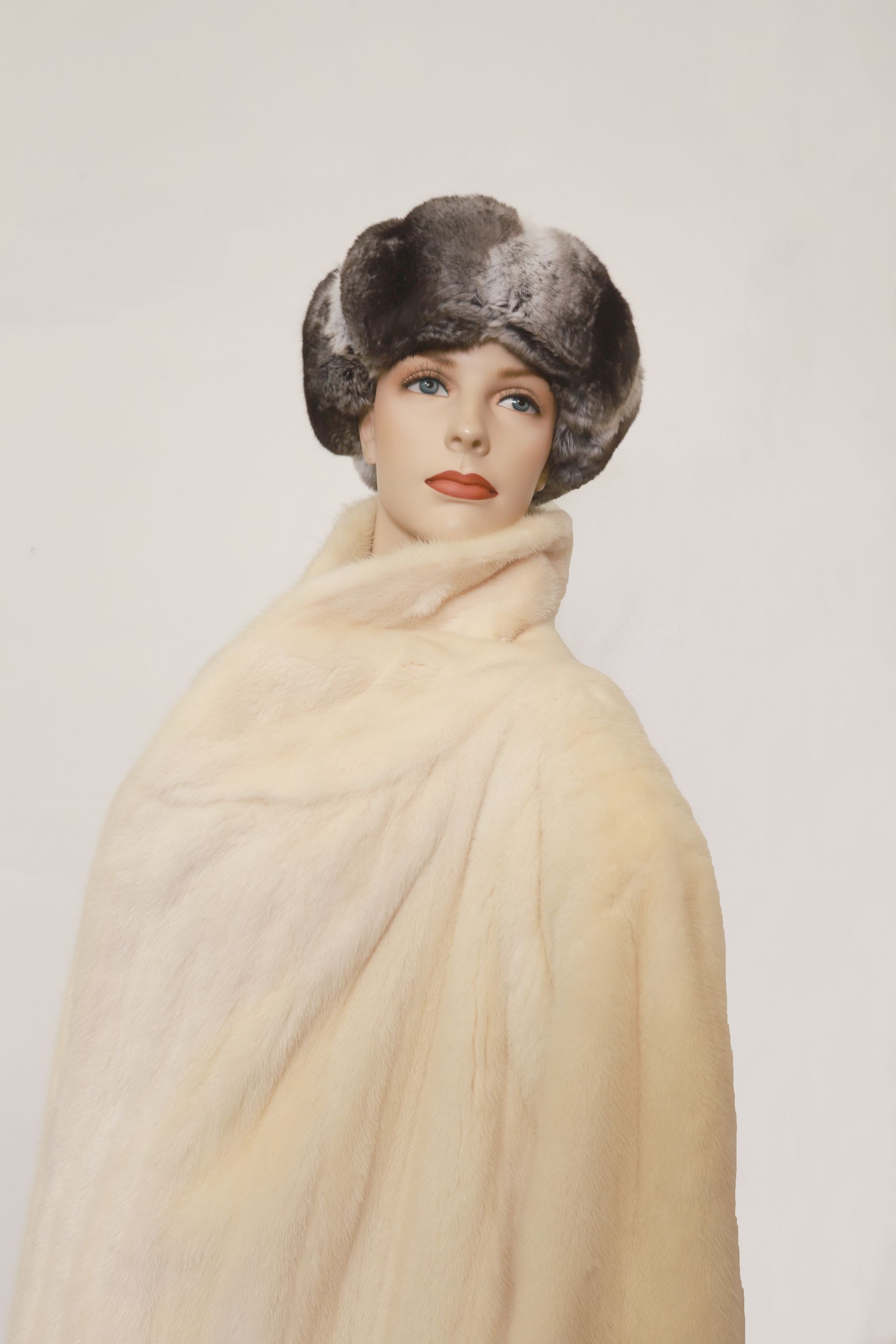 Pearl White Long Mink Coat with Roll-back Cuffs and Chinchilla Hat