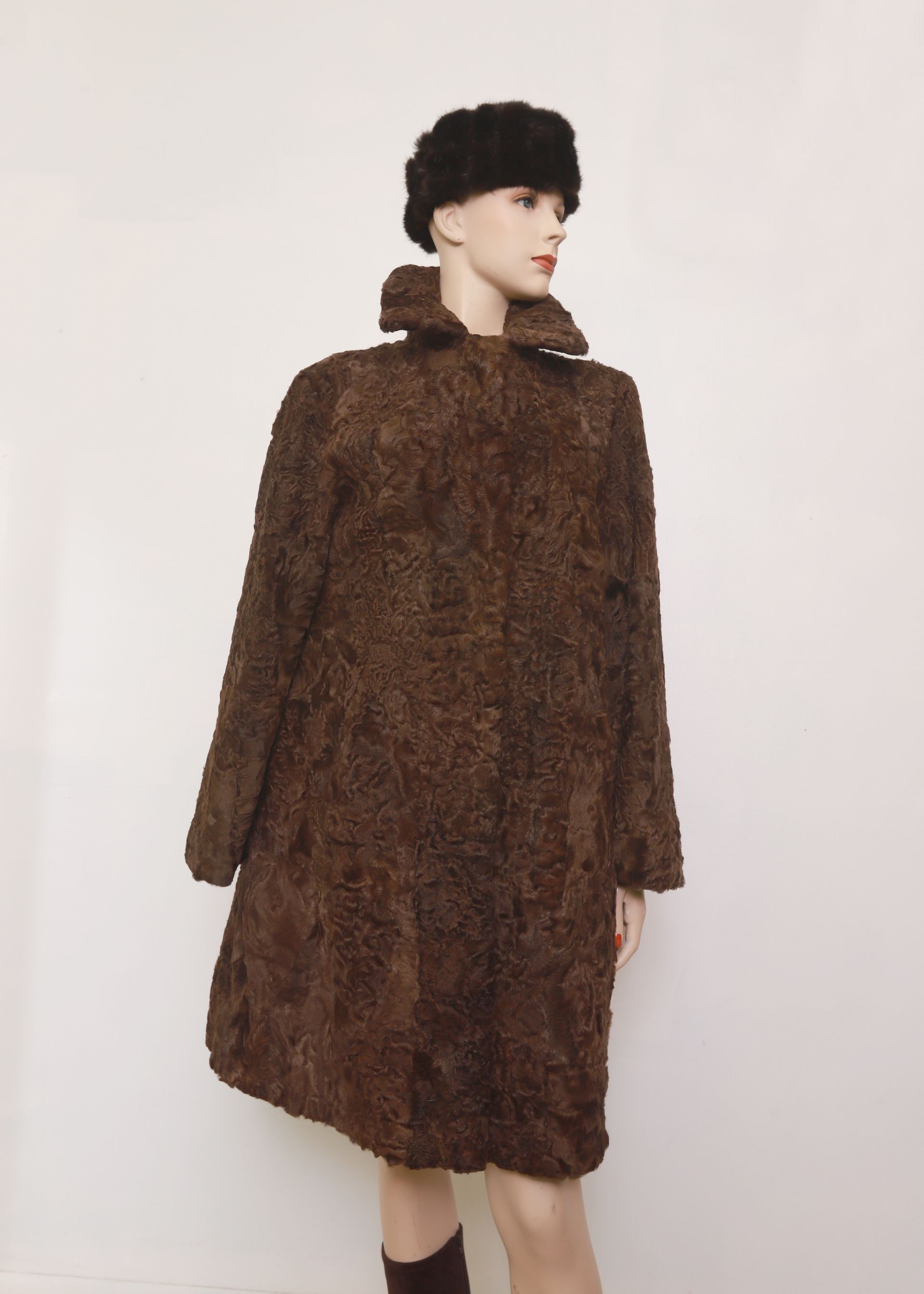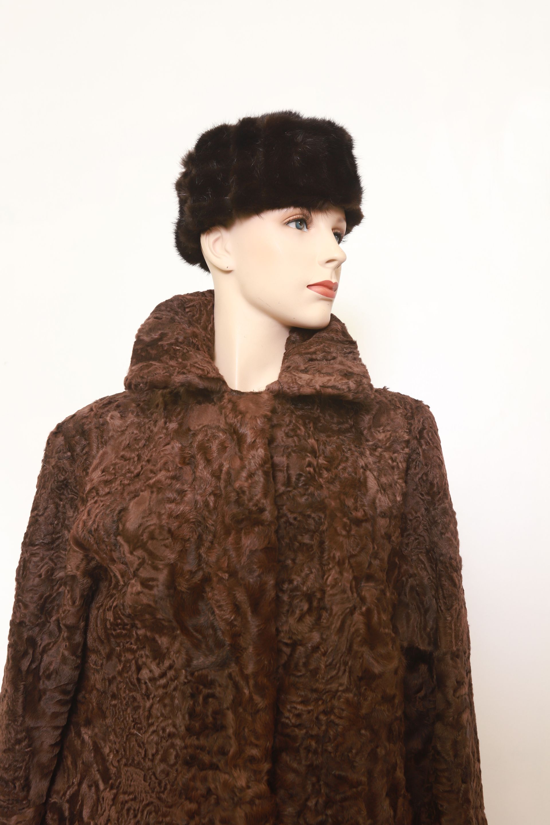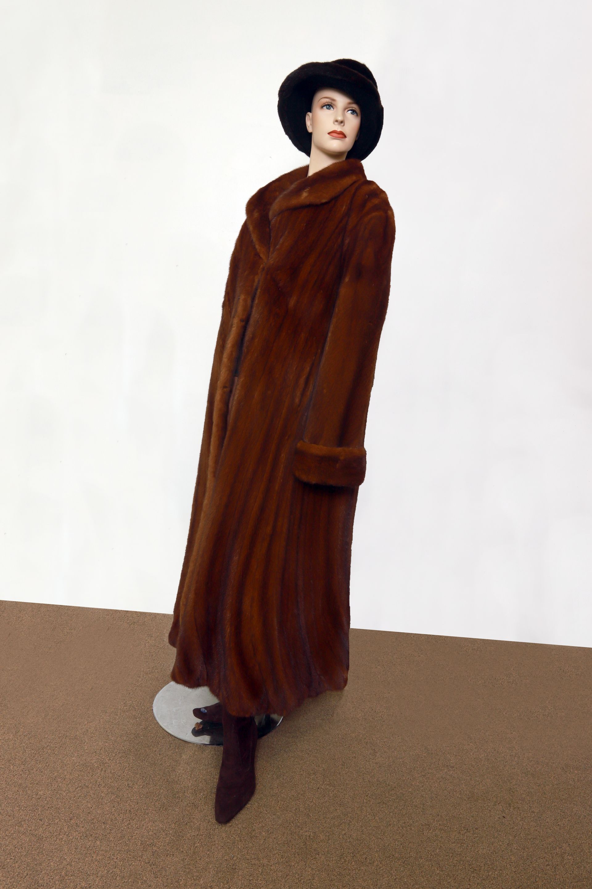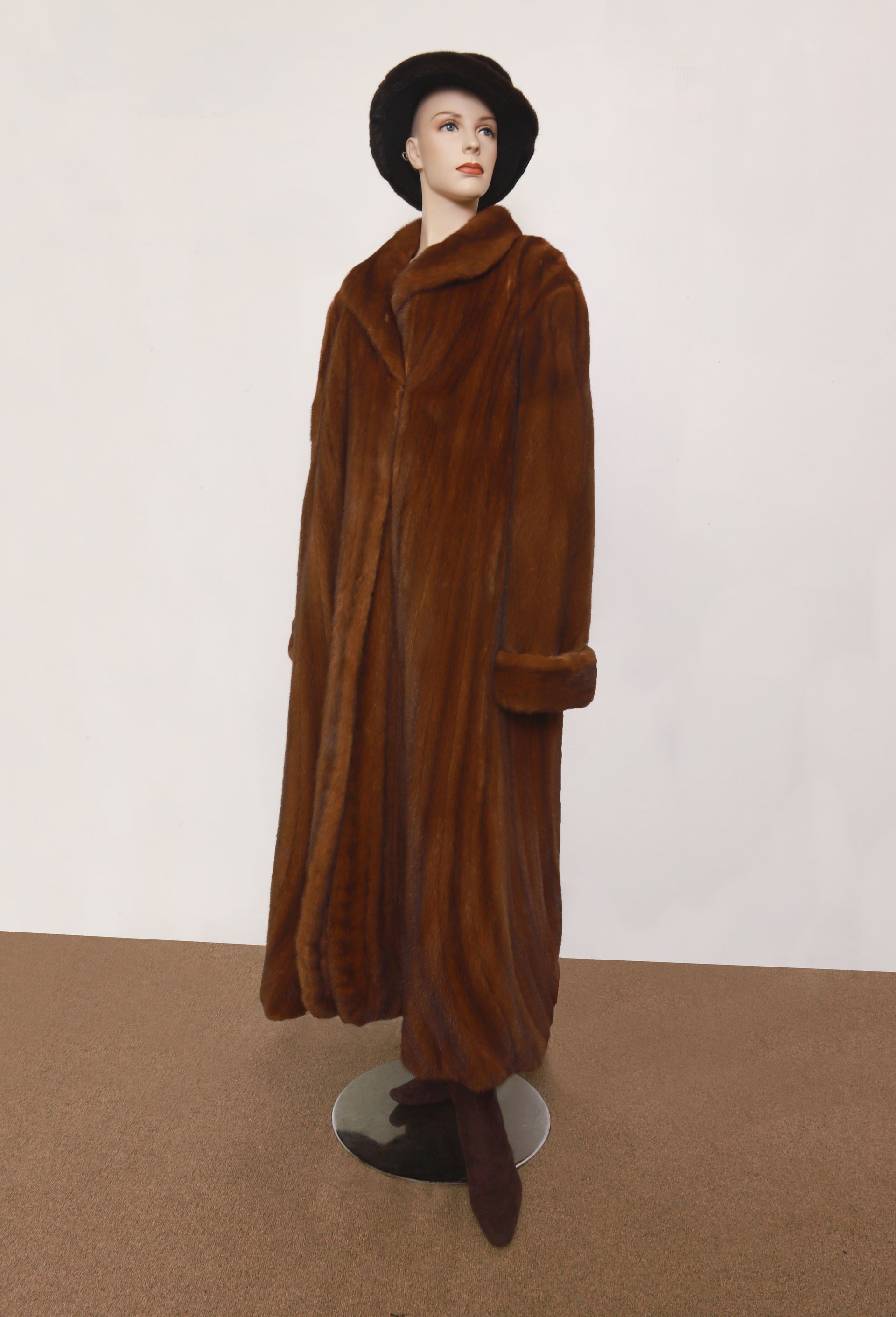 Dark Mahogany Female Mink Coat with Mahogany Mink Hat with Swarovsky Elements